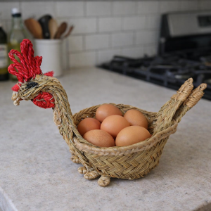 Bandeja de esparto con forma de gallo