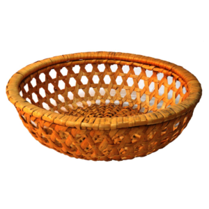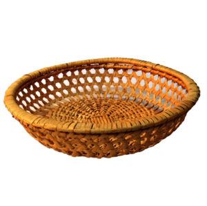 Bandeja ,panera, frutero o centro mimbre natural teñido nogal, calado. Hecha en España artesanalmente.