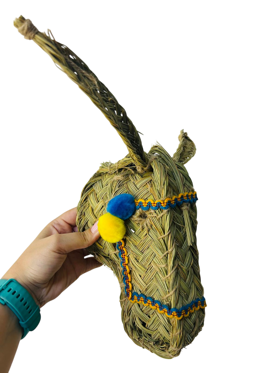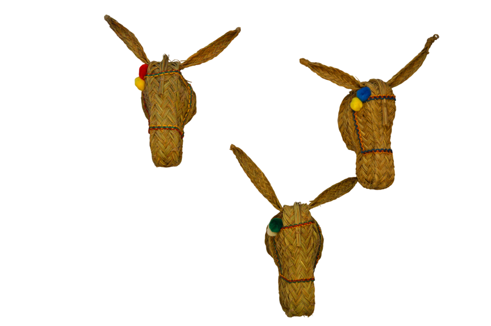 Elija la combinación perfecta de funcionalidad y estilo con nuestras cabeza de esparto. Añada un toque de artesanía a cualquier espacio de su hogar mientras organiza con encanto la decoración de sus estancias como dormitorios, salón, terraza exterior o interior, etc. Nuestra cabeza de burro decorada con variados adornos (cintas, borlas, flecos, pompones etc., está fabricada artesanalmente en España. Es una pieza única tejida a mano con un material natural y sostenible, que le confiere una apariencia auténtica y artesanal.
