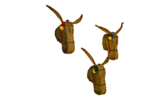 Elija la combinación perfecta de funcionalidad y estilo con nuestras cabeza de esparto. Añada un toque de artesanía a cualquier espacio de su hogar mientras organiza con encanto la decoración de sus estancias como dormitorios, salón, terraza exterior o interior, etc. Nuestra cabeza de burro decorada con variados adornos (cintas, borlas, flecos, pompones etc., está fabricada artesanalmente en España. Es una pieza única tejida a mano con un material natural y sostenible, que le confiere una apariencia auténtica y artesanal.