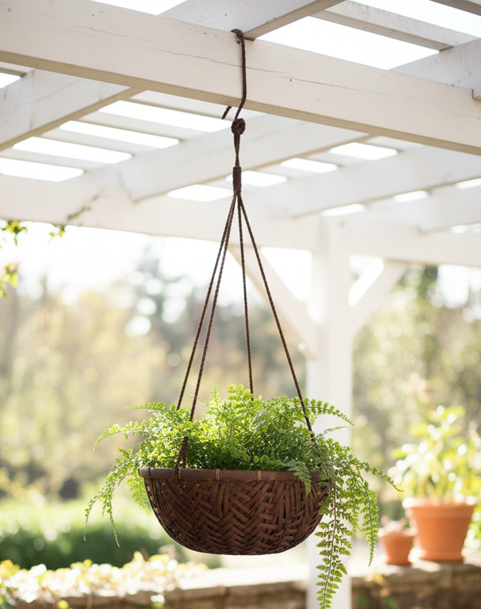 Cesta/macetero colgante de bambú y cuerda cantidad