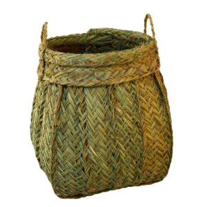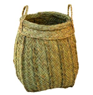 Cesto/rieta esparto con dos asas, macetero forma de vasija. Fabricado artesanalmente en España.