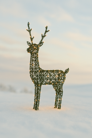 Decore su jardín o su casa con esta colección única. Esta decoración navideña de ciervos iluminados , pone de manifiesto la verdadera belleza de la estación. Hecho a mano en España con fibras naturales es perfectamente resistente a la intemperie durante la temporada de vacaciones de Navidad. Crea una atmósfera mágica durante las fiestas.