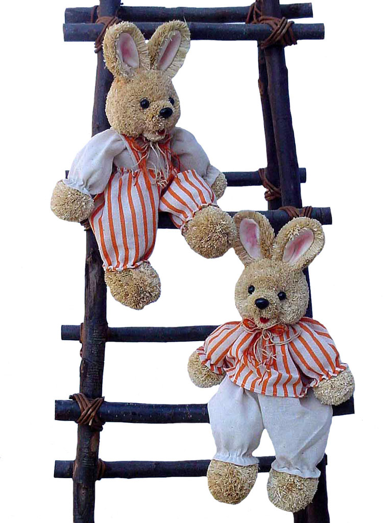Bonitos conejos de paja muy bien elaborados a mano con materiales 100% ecológicos y muy cuidadosos con el medio ambiente.