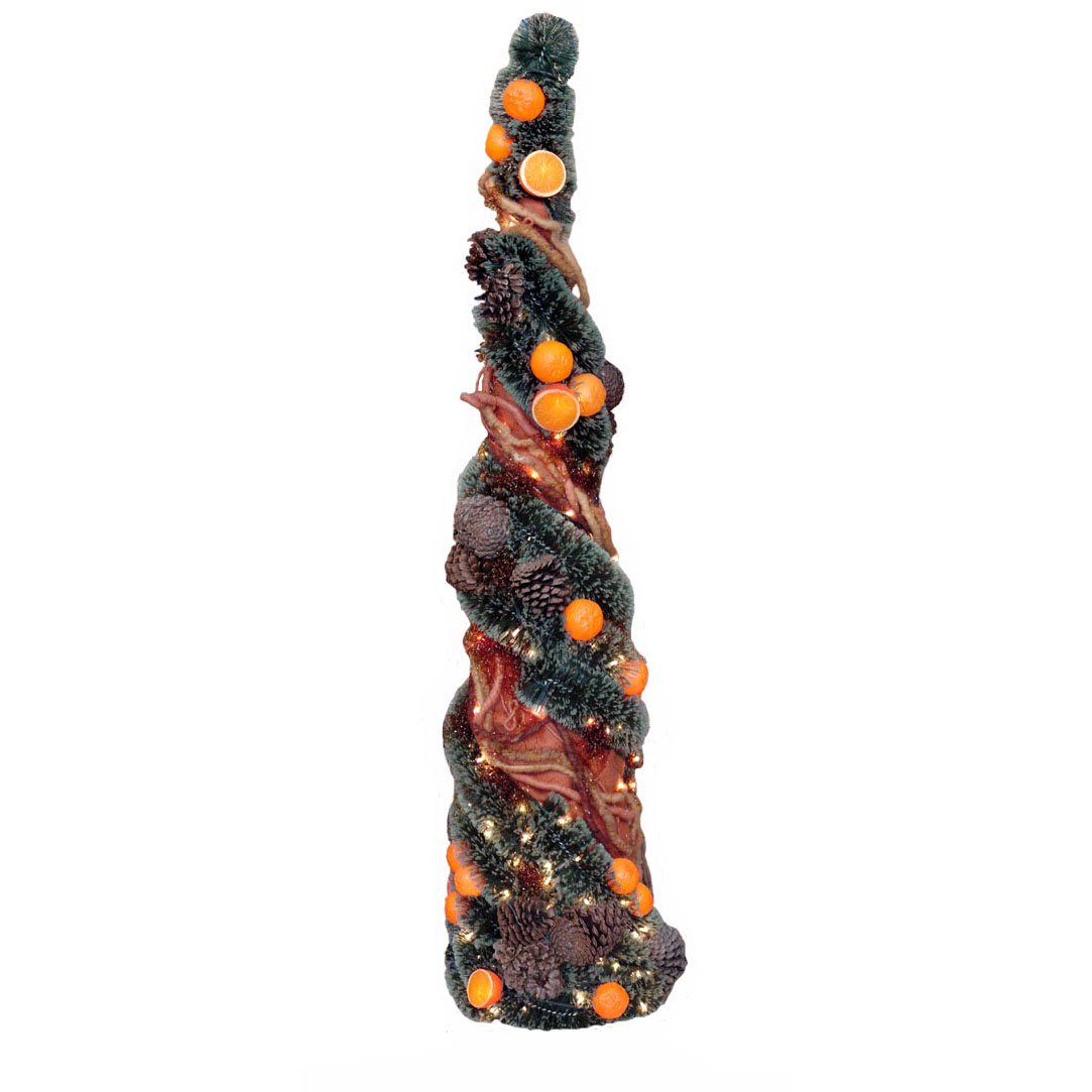 Árbol cono espumillón y naranjas con luz (125 cms) cantidad