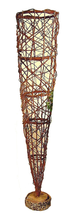 Cono cucurucho mimbre tejido calado. Altura 100 cms. Ideal como gran florero para decoración. Con base de madera. Fabricado en España. Artesanía.