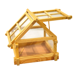 Invernadero en miniatura fabricado en España en madera y cristales en las ventanitas. Materiales estos 100% respetuosos con el medio ambiente. Dada su forma de fabricarse, no hay dos piezas iguales.