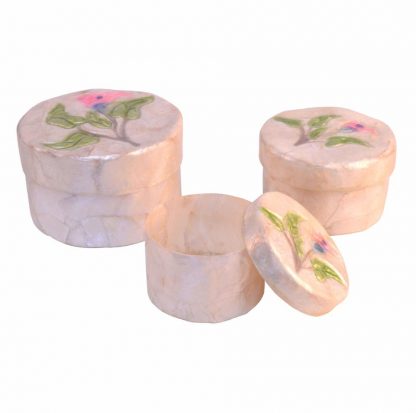 Mantenga sus joyas y bisutería siempre ordenadas con nuestro set de 3 joyeros de nácar. Es un accesorio decorativo cómodo y práctico que le permite tener a mano todas sus joyas o también los complementos para el cabello de manera organizada.