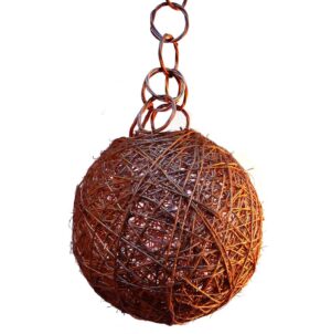 Lámpara bola cuerda de sisal color naranja con instalación eléctrica. Fabricada en España. Artesanía.