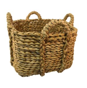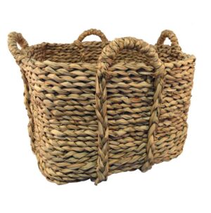 Cesto leñero cuadrado. Magnífico cesto fabricado con trenza de anea española. Muy resistente. Lleva 4 asas que lo refuerzan. Hecho en España. Artesanía.