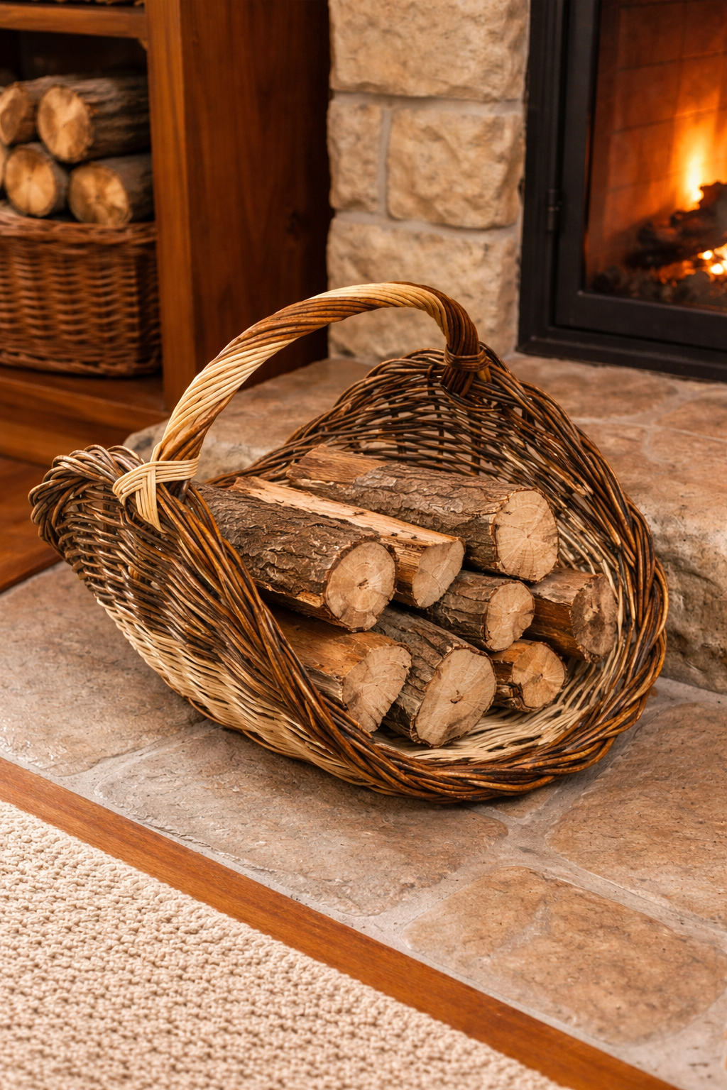 Gracias a su elaboración artesanal y al uso de materiales naturales, cada pieza es única, aportando un toque rústico y acogedor al salón, casas rurales o estancias con chimenea. Una solución práctica que combina funcionalidad y decoración.