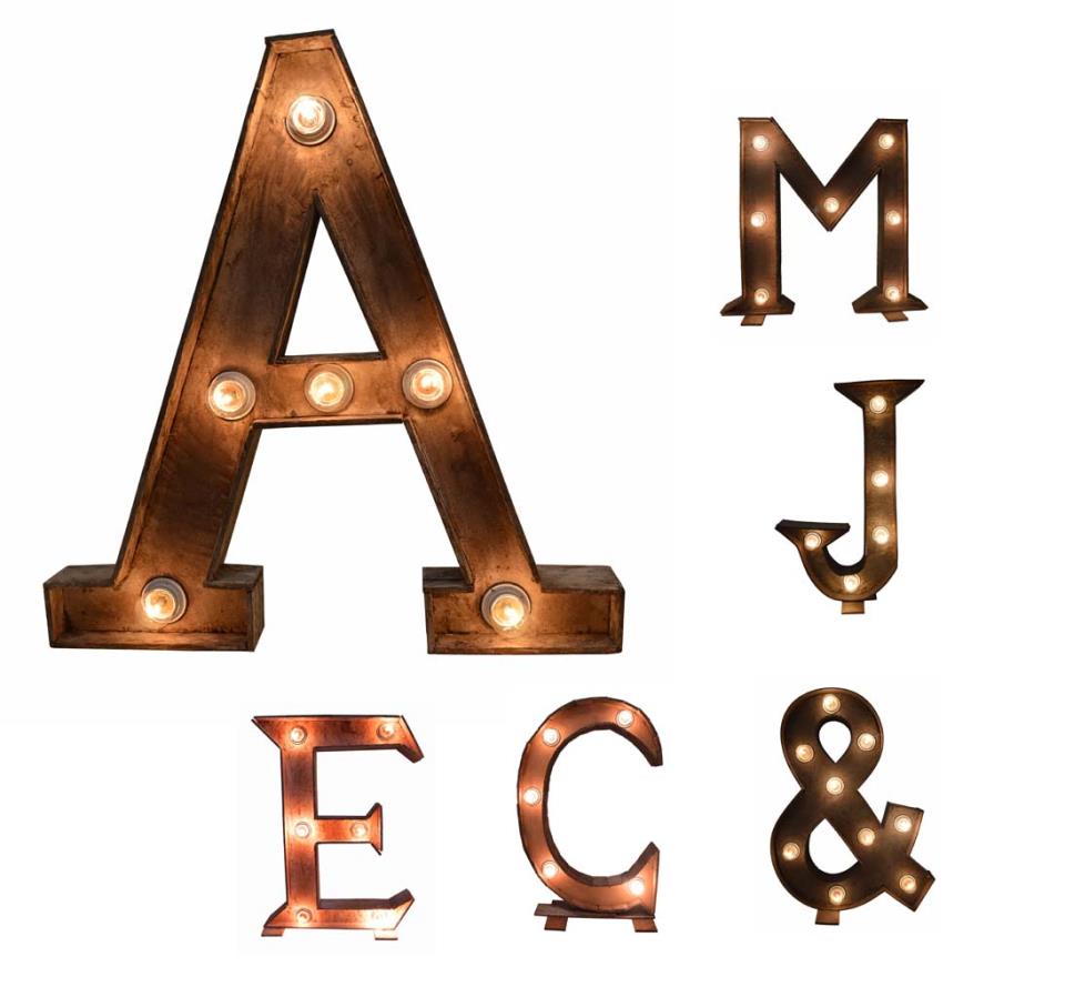 Letra de madera pintada en marrón con instalación eléctrica. No incluye bombillas. Fabricado en España.