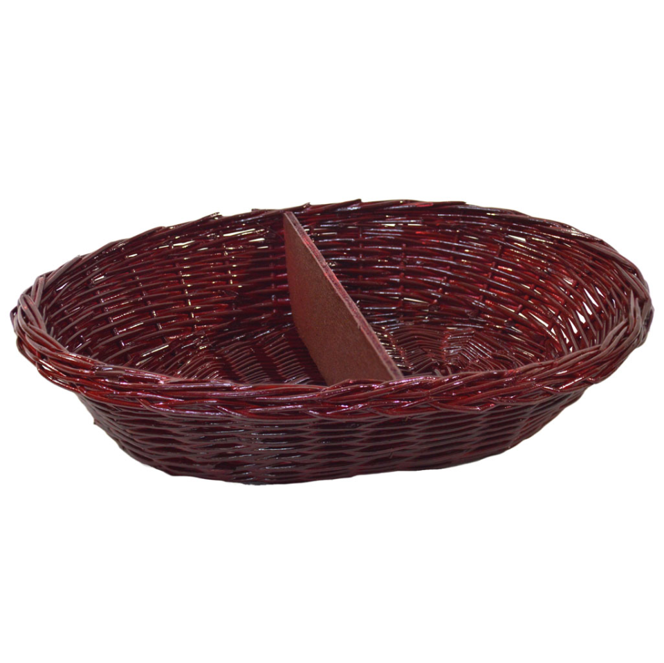 Bandeja entremesera de mimbre, pintada en color rojo burdeos.