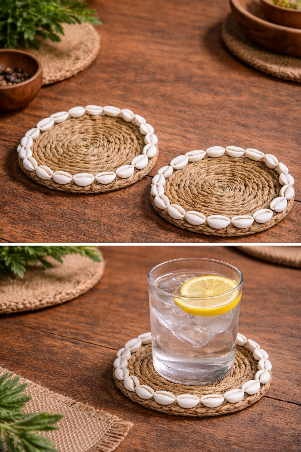 Estos posavasos con conchas encajan perfectamente en mesas de comedor, terrazas, porches o casas de verano, y combinan muy bien con madera, lino, cerámica artesanal y fibras naturales. Son piezas pensadas para el uso diario, pero con un diseño atemporal que no pasa de moda.