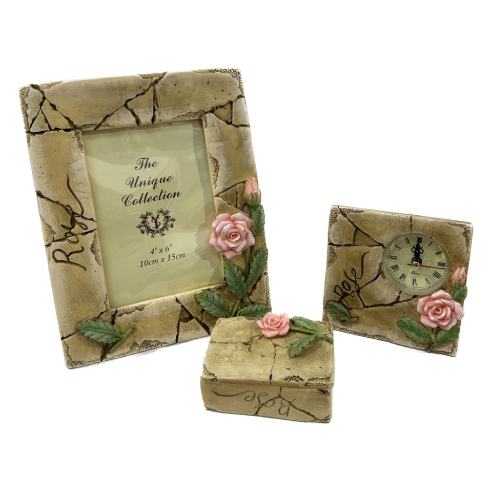 Set porta foto, reloj y cajita de resina cantidad