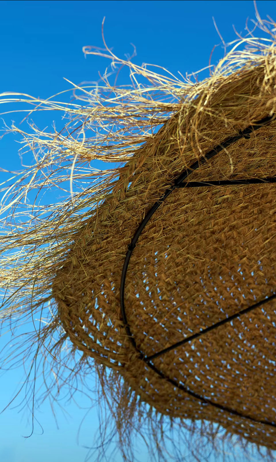 Nuestra sombrilla de esparto natural para colgar es perfecta para proporcionar sombraje en lugares de mucha exposición al sol, por ejemplo, en playas, piscinas, jardines, porches, cafeterías y patios. Su tono natural combina con cualquier estancia y decoración.